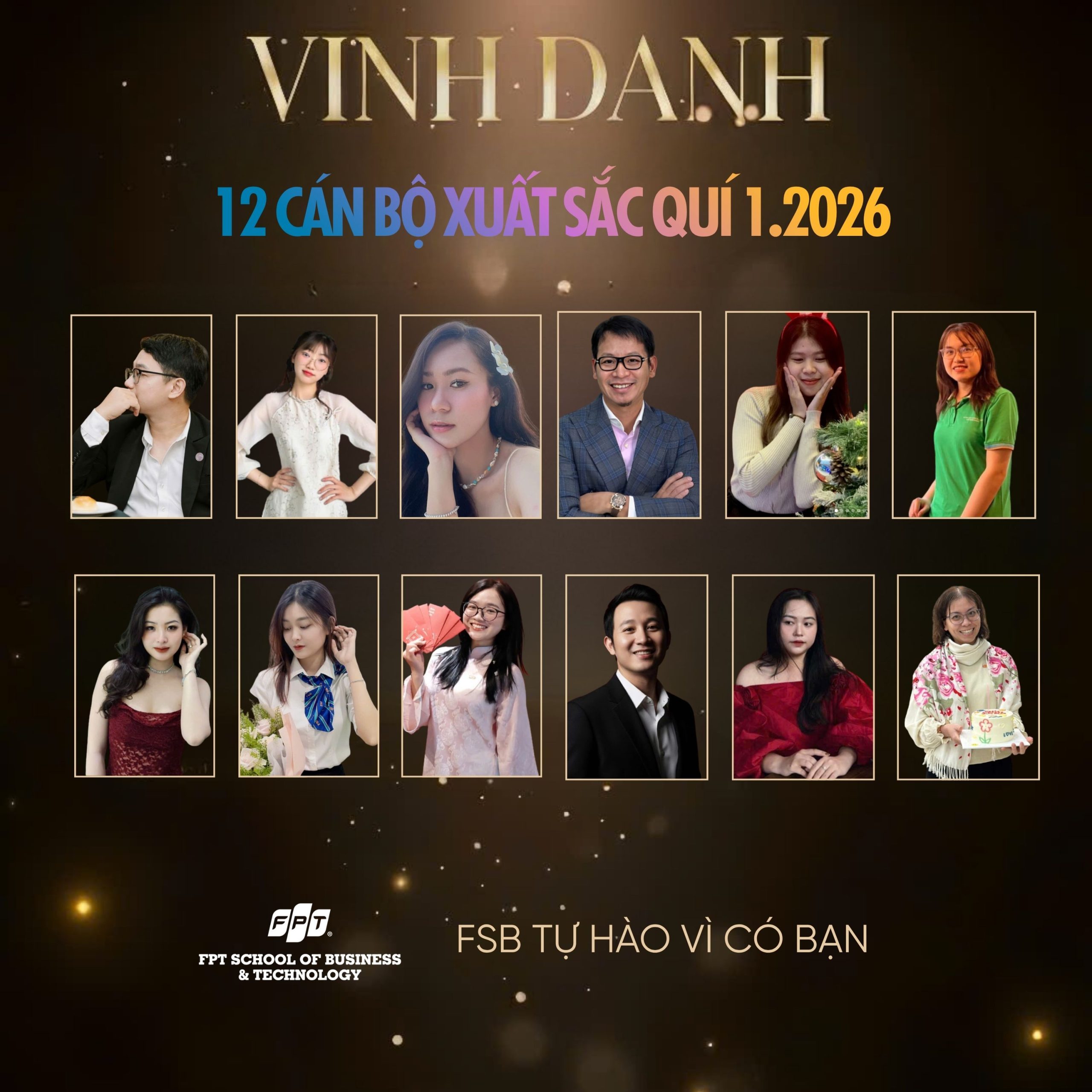 Xin chúc mừng 12 cán bộ, giảng viên xuất sắc – những mảnh ghép quan trọng và đầy tự hào của FSB trong Quý I/2026! Những thành tích này không chỉ là sự ghi nhận xứng đáng mà còn là nguồn cảm hứng mạnh mẽ, tạo đà cho những bước tiến bứt phá trong thời gian tới.