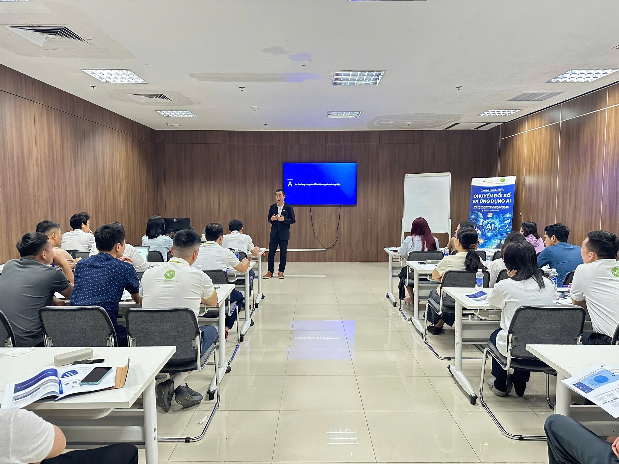 Sáng thứ Sáu ngày 10/04/2026, B2B tiếp tục khẳng định vị thế trong lĩnh vực đào tạo doanh nghiệp khi triển khai thành công rực rỡ khóa học “Chuyển đổi số và ứng dụng AI” dành cho đội ngũ cán bộ quản lý Công ty Cổ phần Suất ăn Hàng không Nội Bài (NCS). Sự kiện diễn ra song song với các lớp đào tạo tại MB Bank, minh chứng cho năng lực vận hành chuyên nghiệp và tinh thần “chạy KPI” thần tốc của đội ngũ B2B trong buổi sáng cuối tuần.