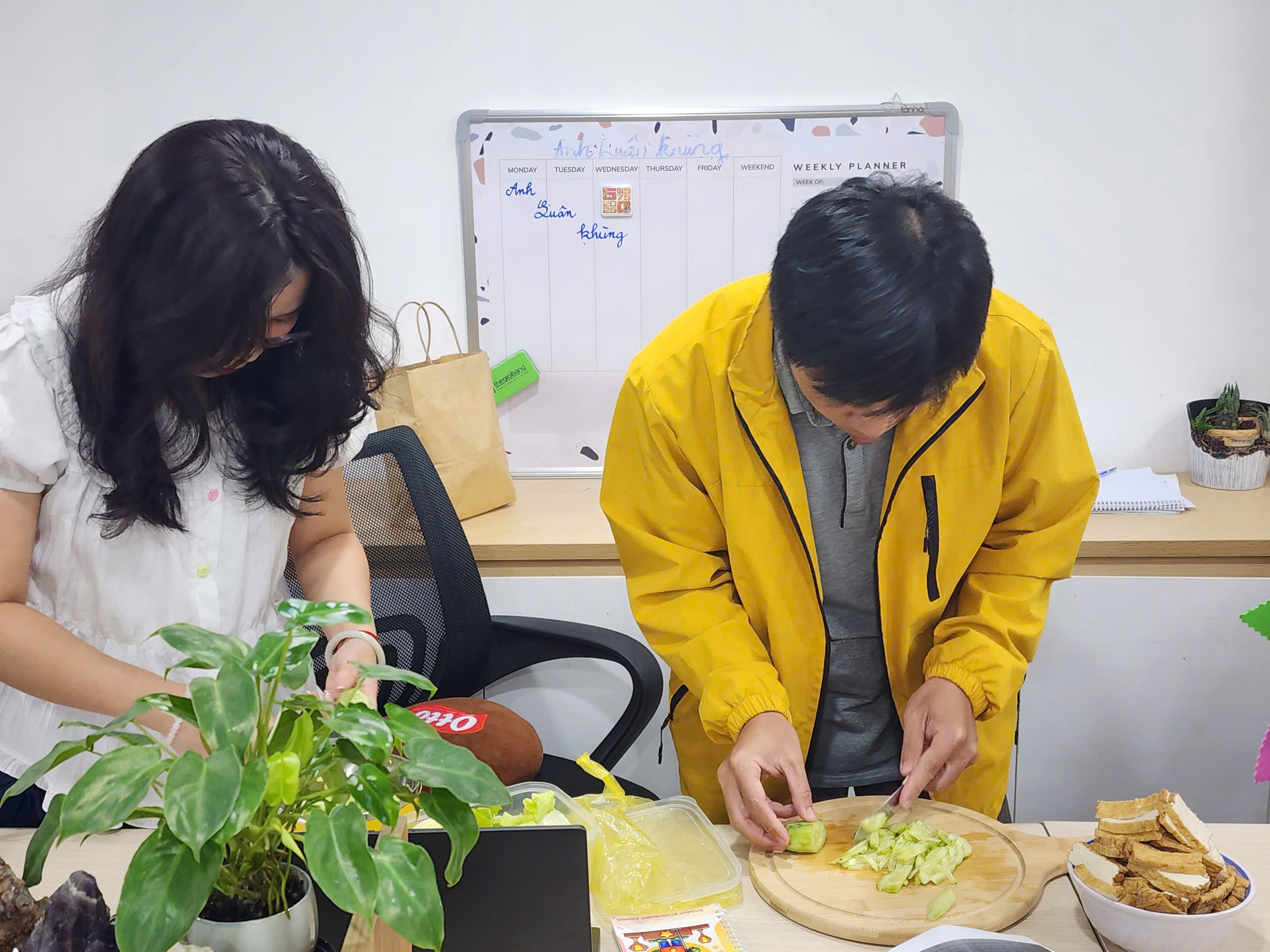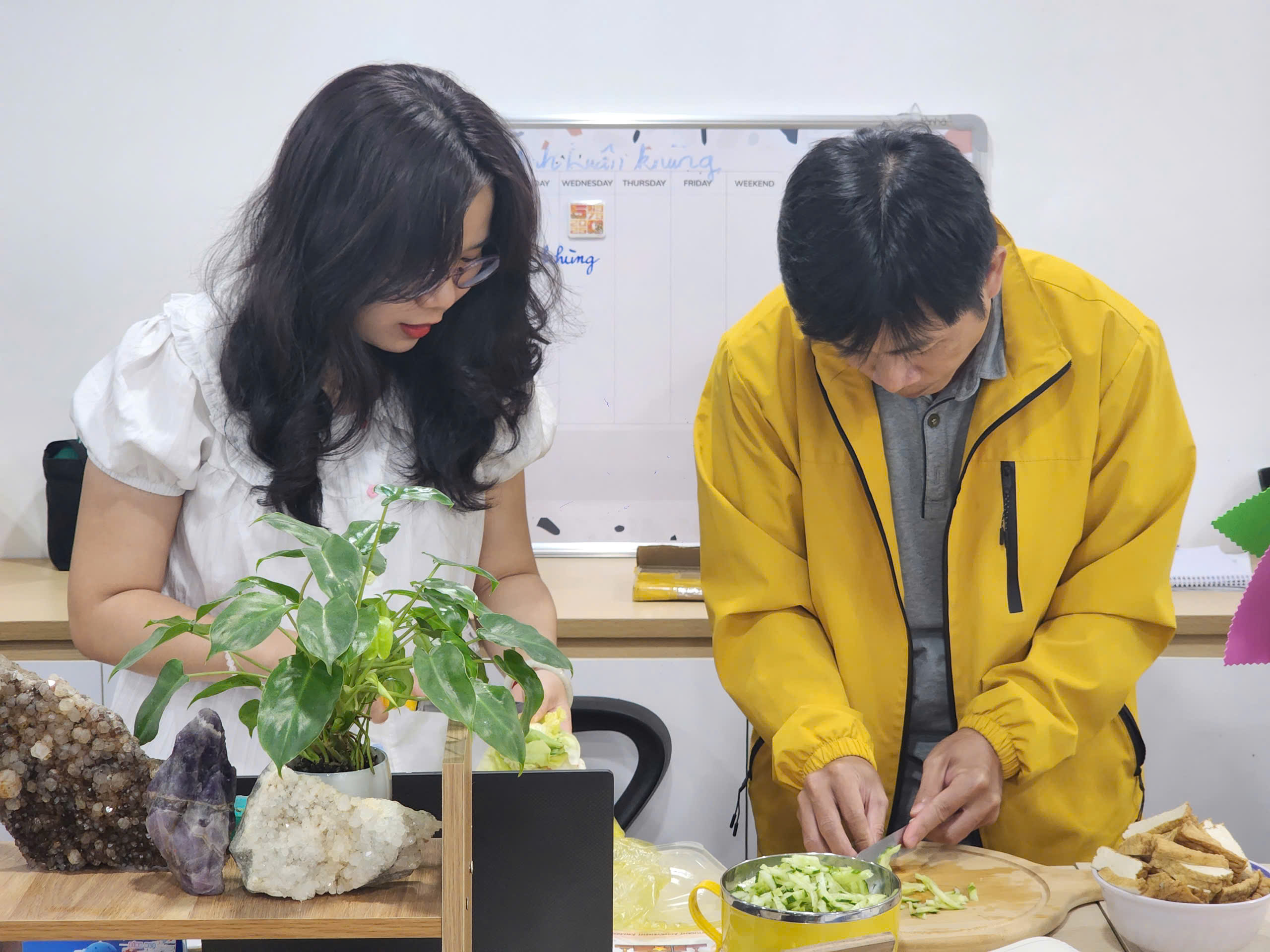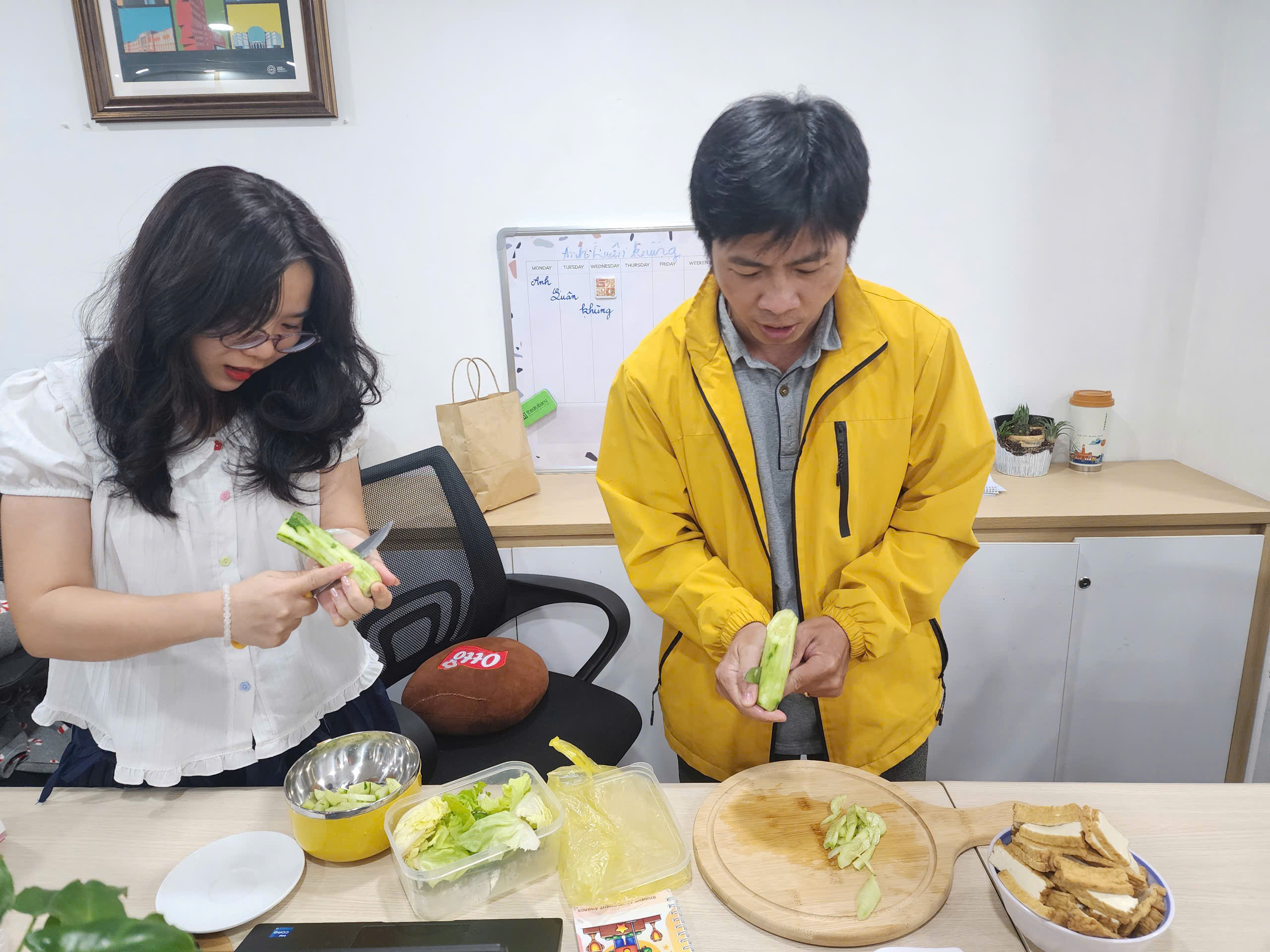 Không cần chuẩn bị cầu kỳ, mỗi người góp một món – từ món rau đến món kho, món chay, món quê nhà đến những “đặc sản” tự tay nấu. Tất cả hòa quyện thành một bàn tiệc đa sắc, đa vị, nhìn thôi đã thấy “tốn cơm hết nước chấm”. Nhưng điều làm nên sự tròn đầy của bữa trưa không chỉ nằm ở hương vị, mà ở tiếng cười, ở những câu chuyện sẻ chia và tinh thần cùng nhau hướng thiện trong ngày rằm.