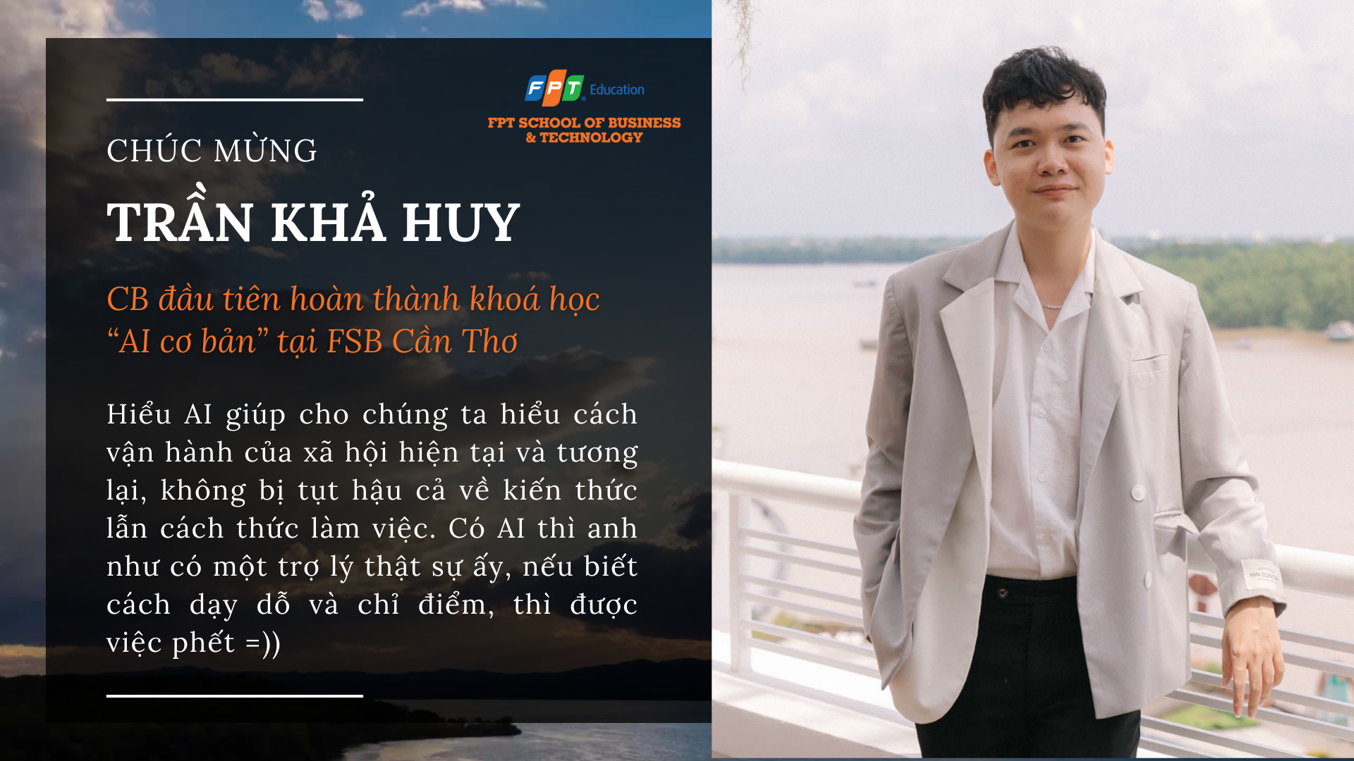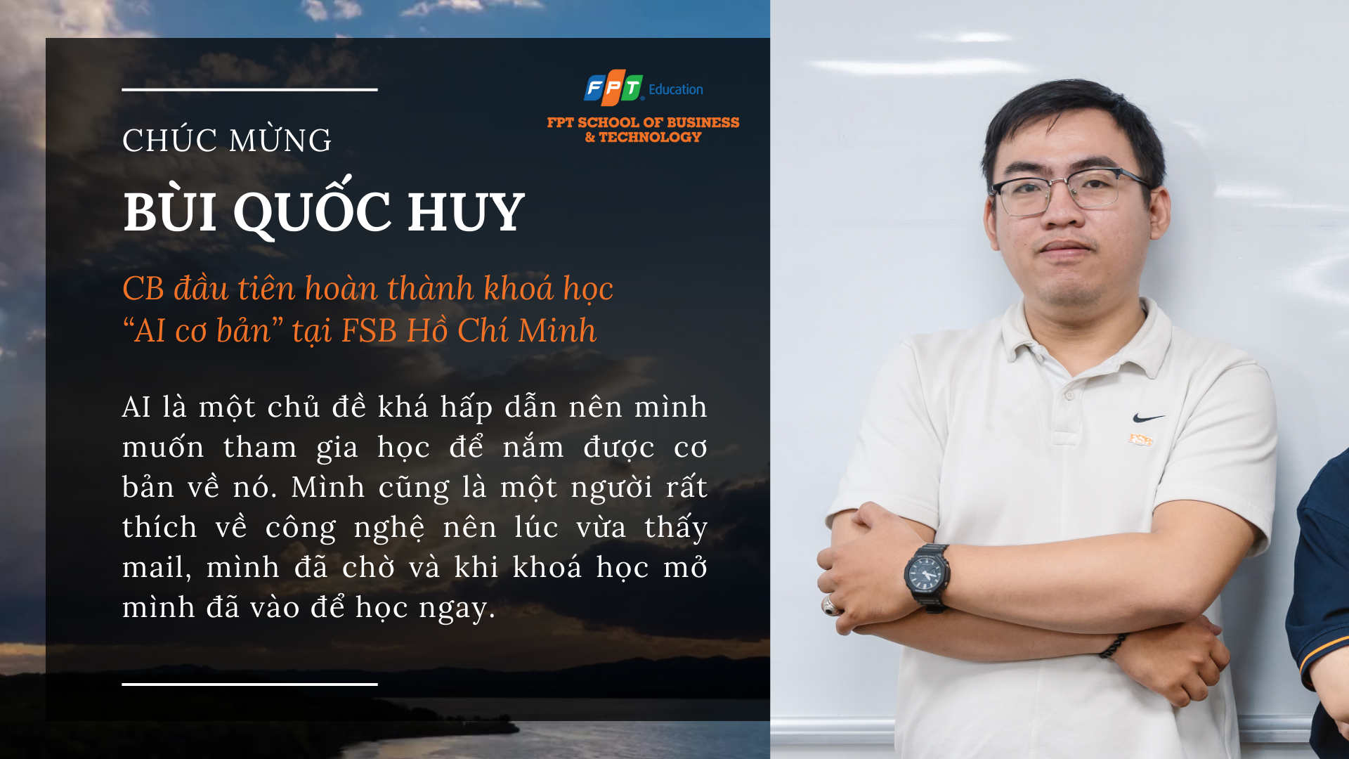 👉 “Về khóa học AI, thật sự là xu thế và cần thiết để phổ cập cho mọi người, nhất là người FPT. Giống như office cách đây 20 năm và mạng xã hội cách đây 10 năm, AI sẽ sớm trở thành một kỹ năng cần thiết cho mọi người khi làm việc.” – Anh HuyTK
