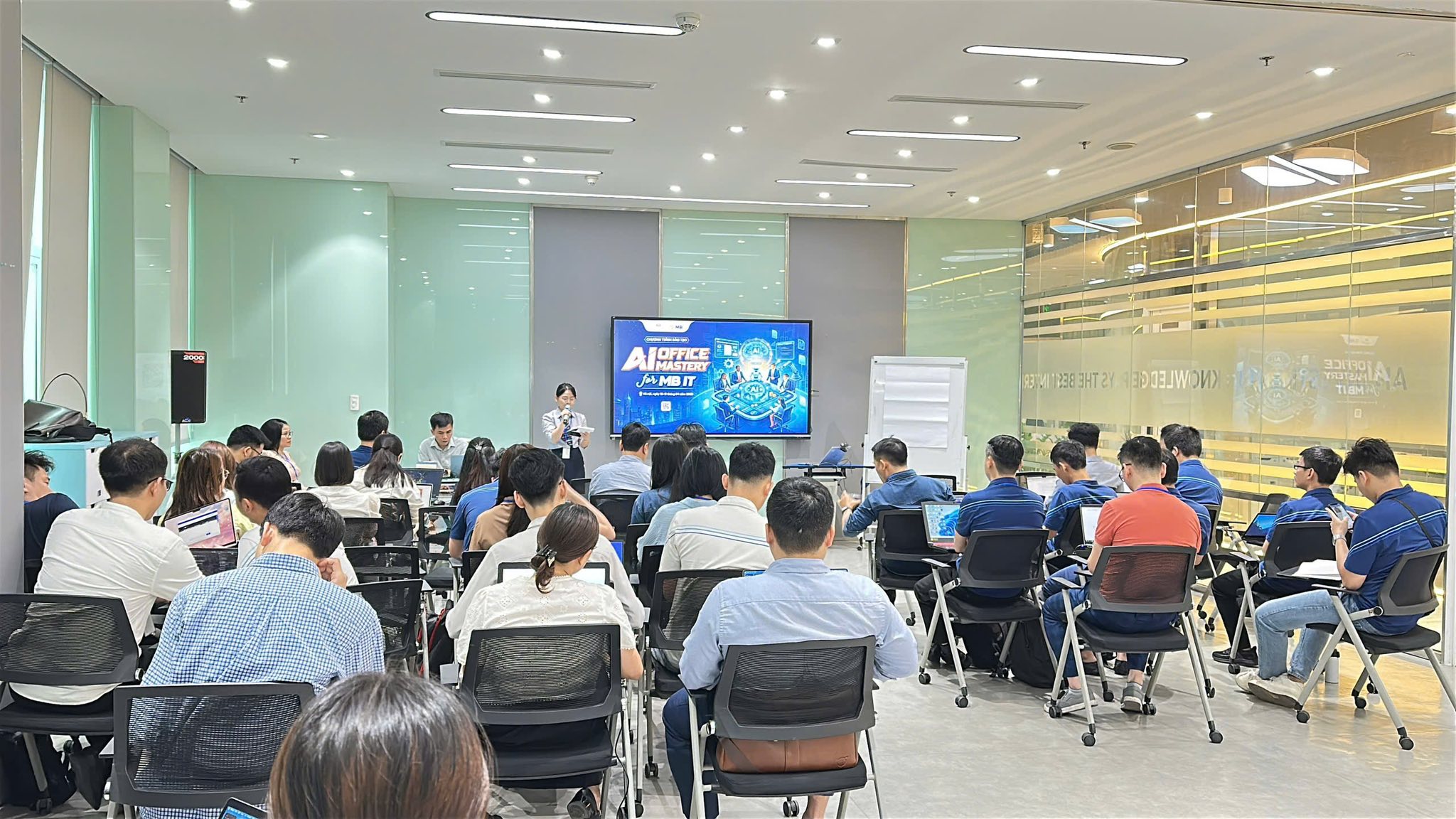 Dưới sự dẫn dắt của giảng viên Nguyễn Văn Khánh – chuyên gia giàu kinh nghiệm trong lĩnh vực ứng dụng AI, khóa học tập trung vào các giải pháp thực tiễn giúp đội ngũ IT xử lý dữ liệu và tự động hóa các tác vụ văn phòng một cách đột phá. Sự hào hứng của các học viên ngay từ những giờ học đầu tiên đã khẳng định sức hút của nội dung đào tạo và tầm nhìn tiên phong của MB Bank trong việc nâng cao chất lượng nguồn nhân lực công nghệ.