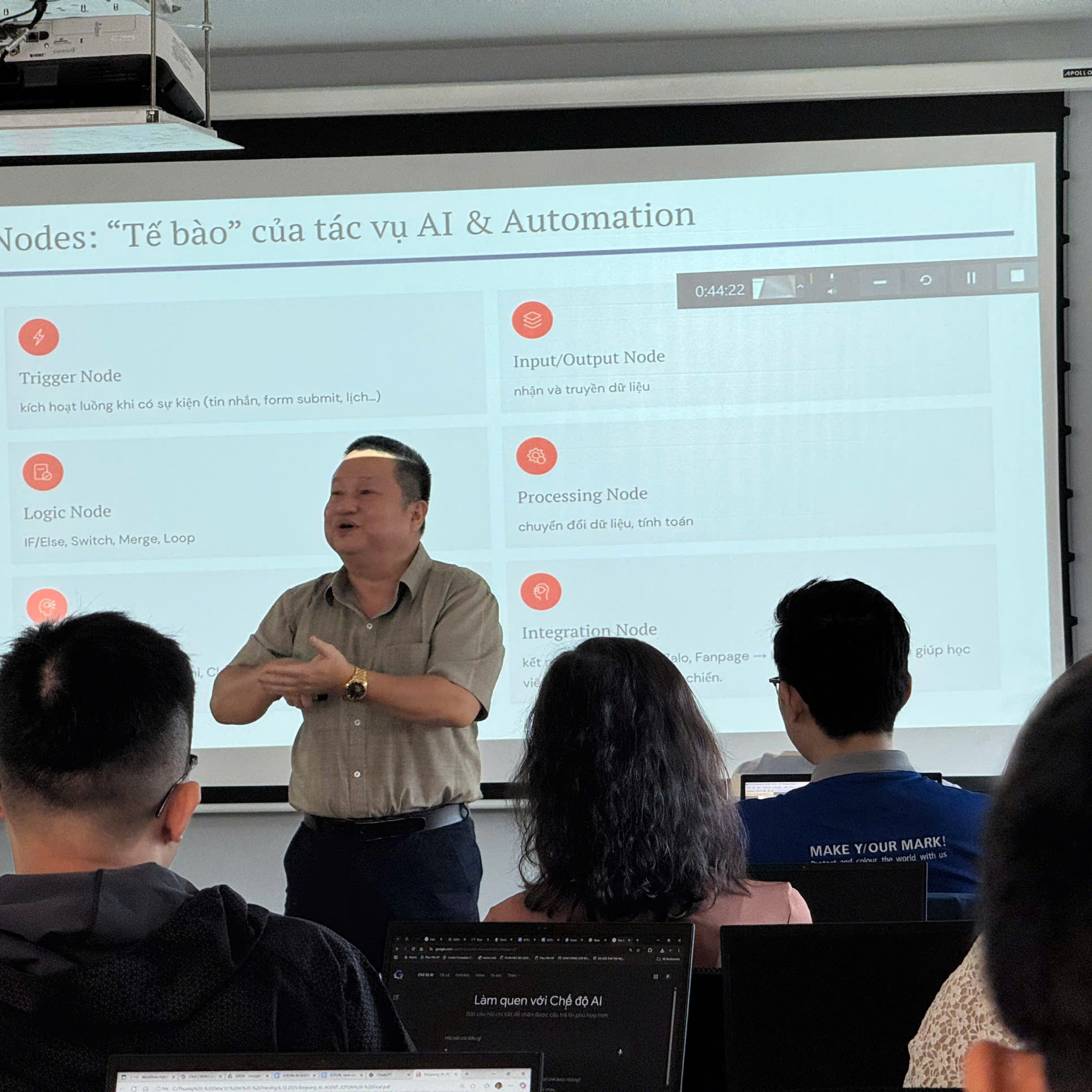 Buổi học đầu tiên do Chuyên gia Huỳnh Tiên Hiếu phụ trách, mang đến góc nhìn thực tế về AI Agent và các ứng dụng trong công việc hằng ngày. Với phương pháp dẫn dắt rõ ràng, dễ hiểu và giàu tính thực hành, chuyên gia giúp học viên tiếp cận AI một cách hệ thống, hiệu quả và sát với nhu cầu doanh nghiệp.