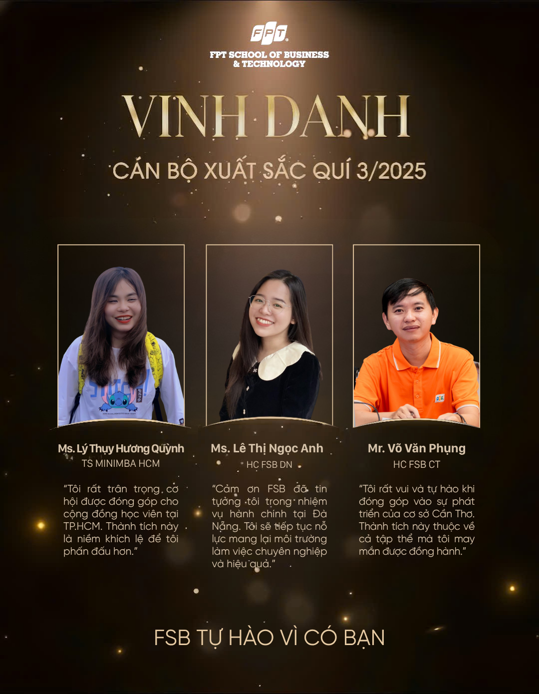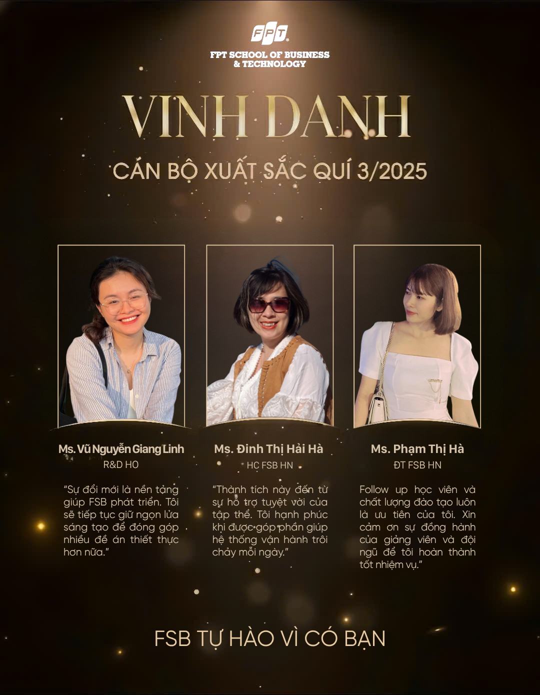Khoảnh khắc đáng tự hào đã chính thức gọi tên 15 cán bộ giảng viên xuất sắc của FSB trong Quý 3/2025!