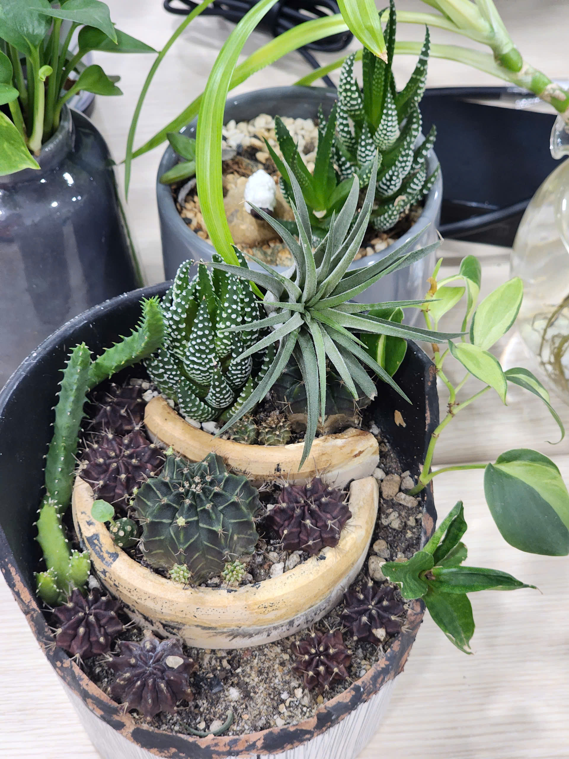 Trên từng góc bàn làm việc, mỗi người lại chọn cho mình một kiểu cây khác nhau: