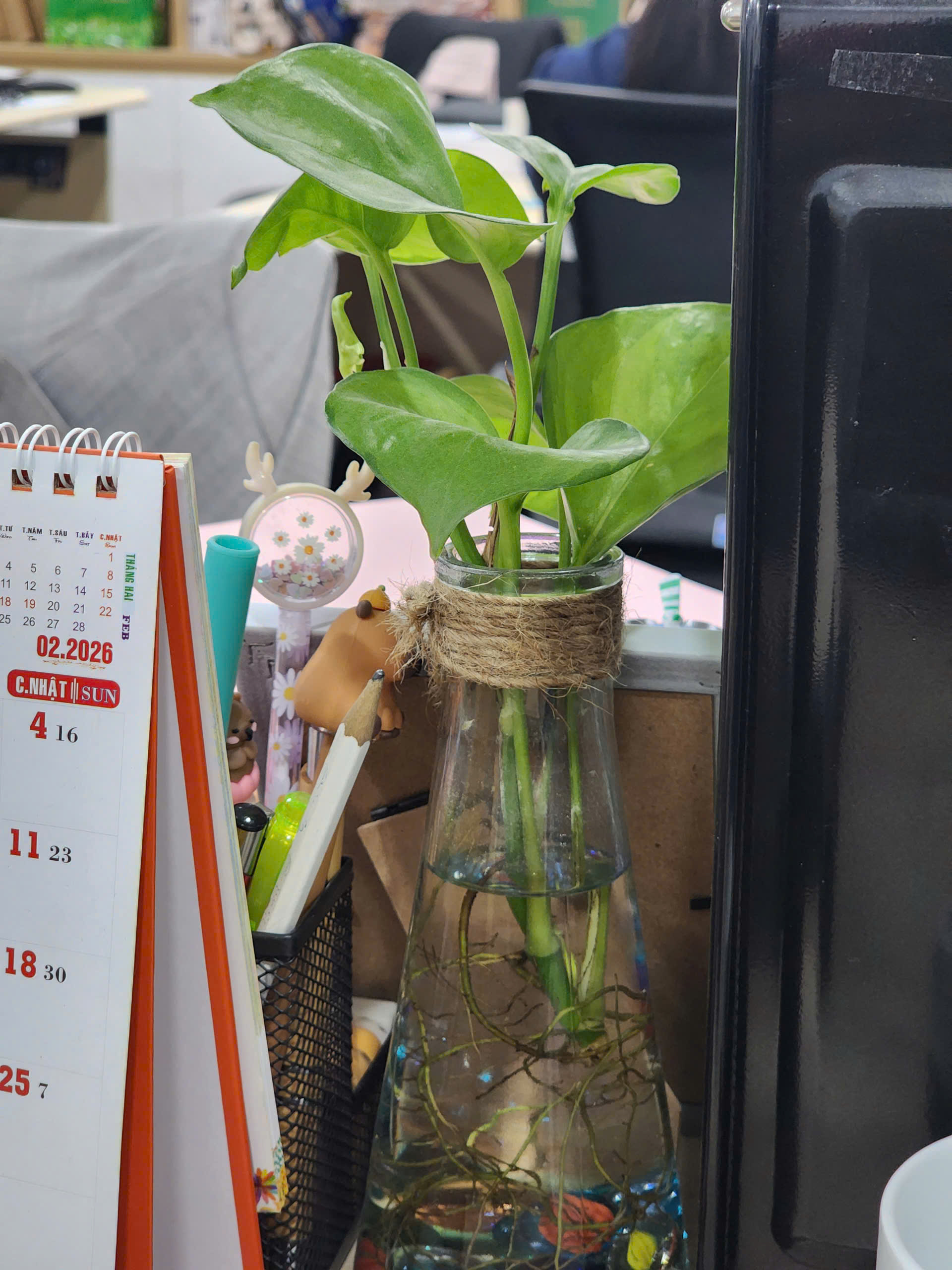 Không chỉ đóng vai trò trang trí, cây xanh còn giúp không gian làm việc trở nên dễ chịu và cân bằng hơn. Giữa những giờ làm việc tập trung, một chút màu xanh trên bàn hay nơi góc phòng cũng đủ tạo cảm giác thư giãn, tiếp thêm năng lượng tích cực cho ngày làm việc.