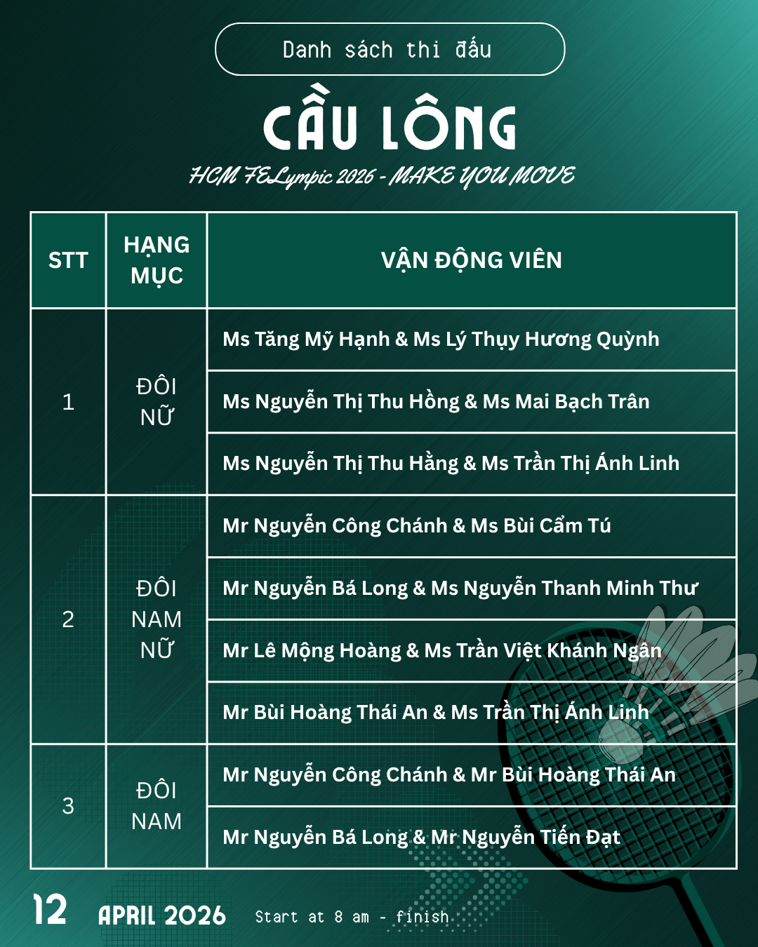 Không khí tại FSB TP.HCM những ngày này đang “nóng” hơn bao giờ hết khi các đội tuyển bước vào giai đoạn luyện tập cao độ để sẵn sàng cho HCM FELYMPIC 2026 – mùa giải thể thao được mong chờ nhất trong năm.