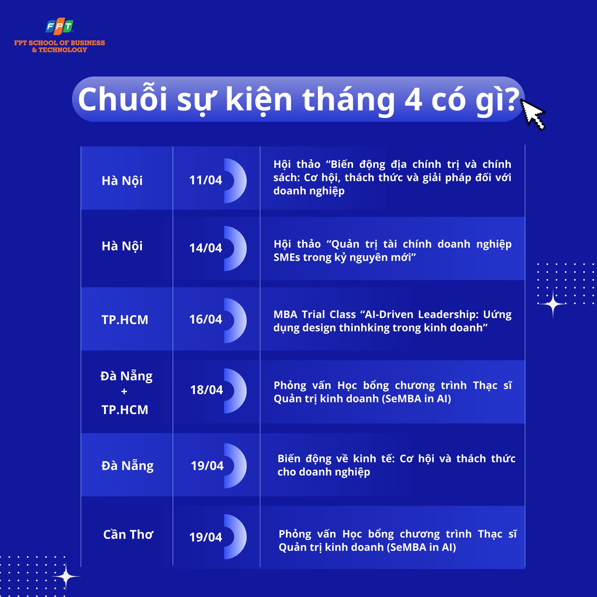Tháng Tư tại FSB đang “nóng” hơn bao giờ hết với chuỗi sự kiện MBA dành riêng cho các ứng viên tiềm năng – nơi hội tụ những khát khao bứt phá, mở rộng kết nối và đón nhận những cơ hội phát triển mới.