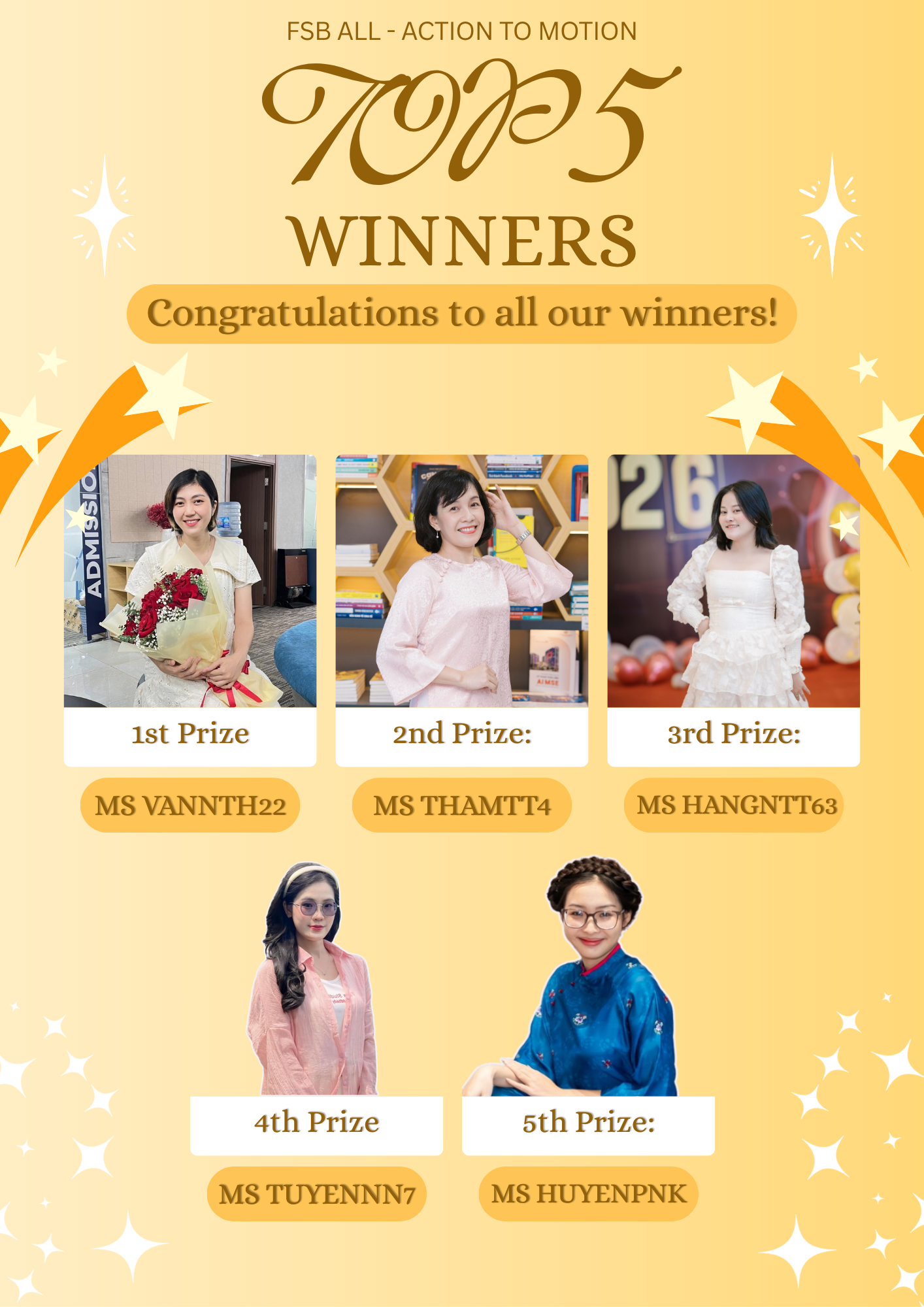 Xin chúc mừng Top 5 CB FSB xuất sắc tháng 3 – những gương mặt đã và đang góp phần làm nên một “ngôi nhà chung” không chỉ sôi nổi mà còn thật sự đáng nhớ với mỗi thành viên: