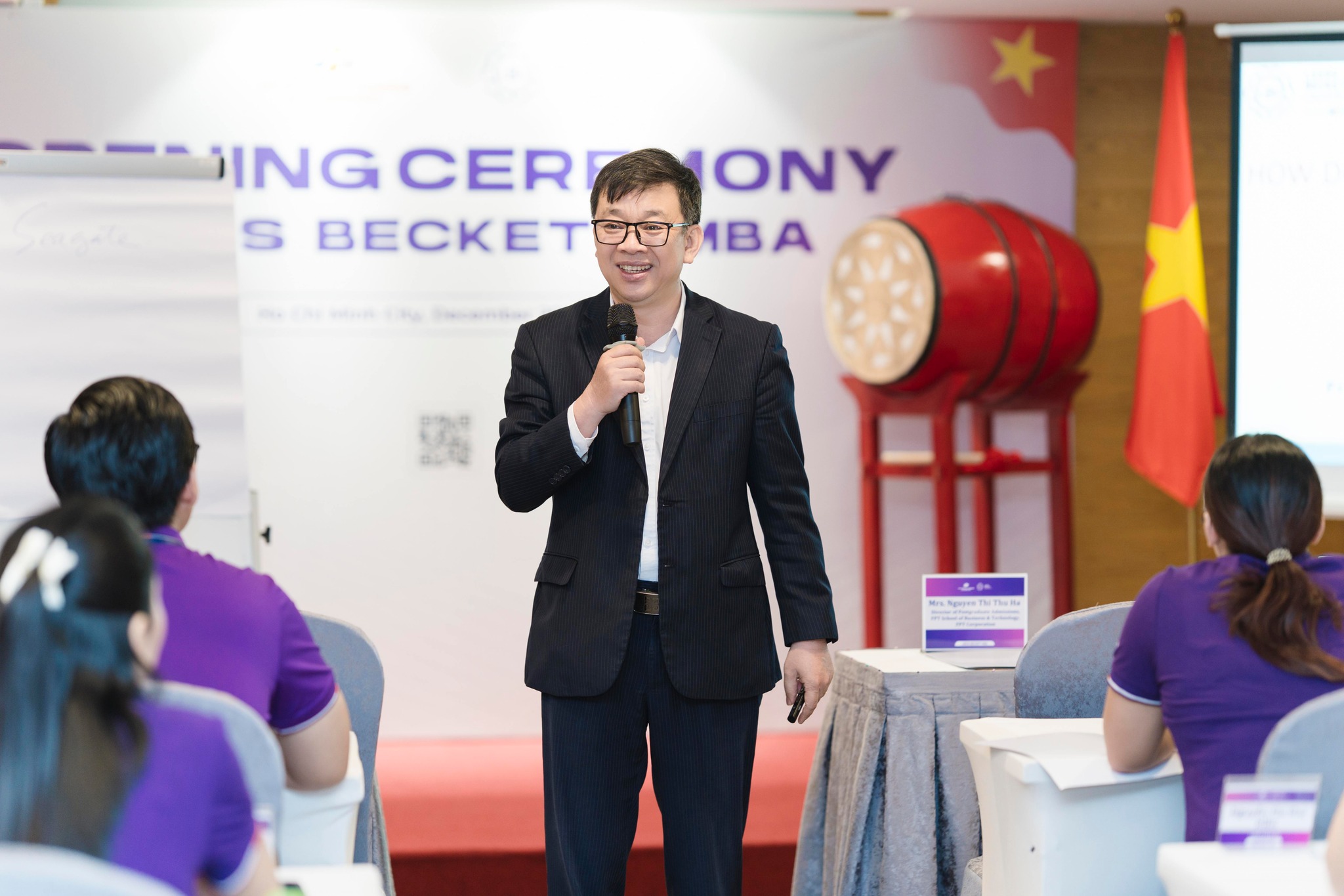 Trong dòng chảy cảm xúc ấy, những khoảnh khắc rộn ràng tại Open Ceremony, đặc biệt là sự chuyển giao đầy ý nghĩa giữa hai thế hệ – từ Cựu học viên FSB, Tân Thạc sĩ Lê Quốc Kiệt (LBM04HCM) – tiếp tục lan tỏa nguồn năng lượng tích cực, khơi dậy tinh thần học tập, đổi mới và khát vọng hội nhập, trở thành động lực đồng hành cùng các anh/chị trong suốt chặng đường phía trước.